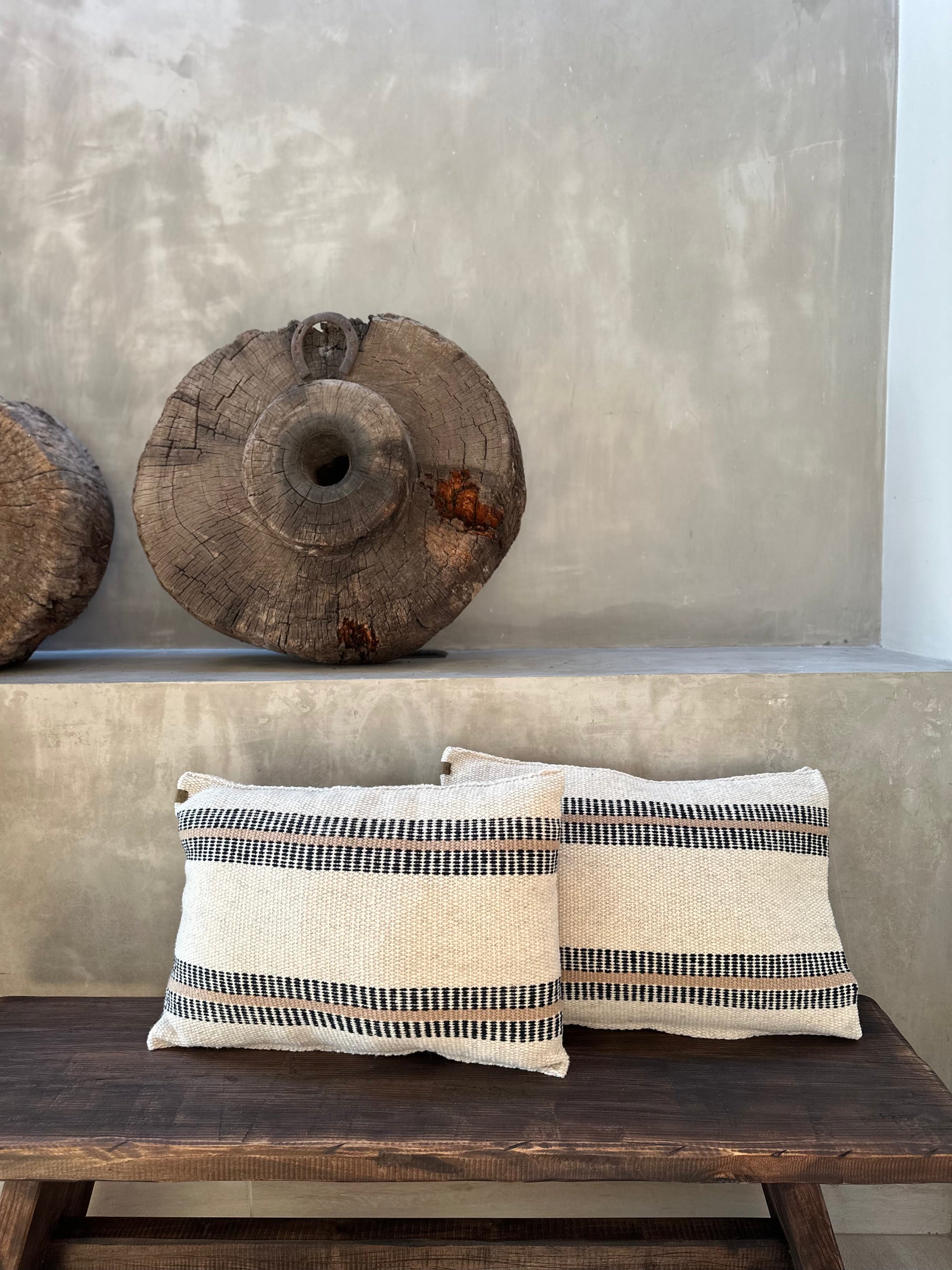 El Cojín Corcovado combina elegancia y tradición, teñido y tejido a mano por expertas artesanas con lana de oveja 100% natural. Su diseño en negro, crudo y beige aporta sofisticación a cualquier espacio, mientras que el cierre lateral facilita el lavado de la funda. Incluye relleno para mayor comodidad y durabilidad, resaltando la autenticidad y calidad artesanal en cada detalle. Entrega en 3 semanas ya que se manda a fabricar.