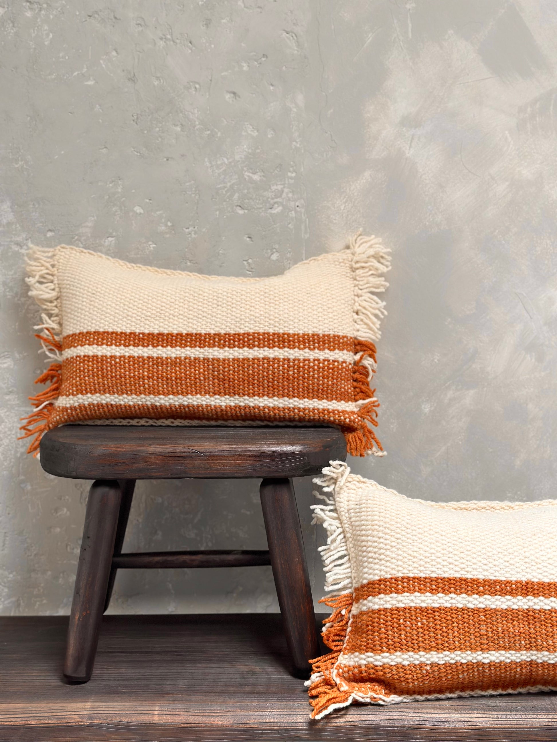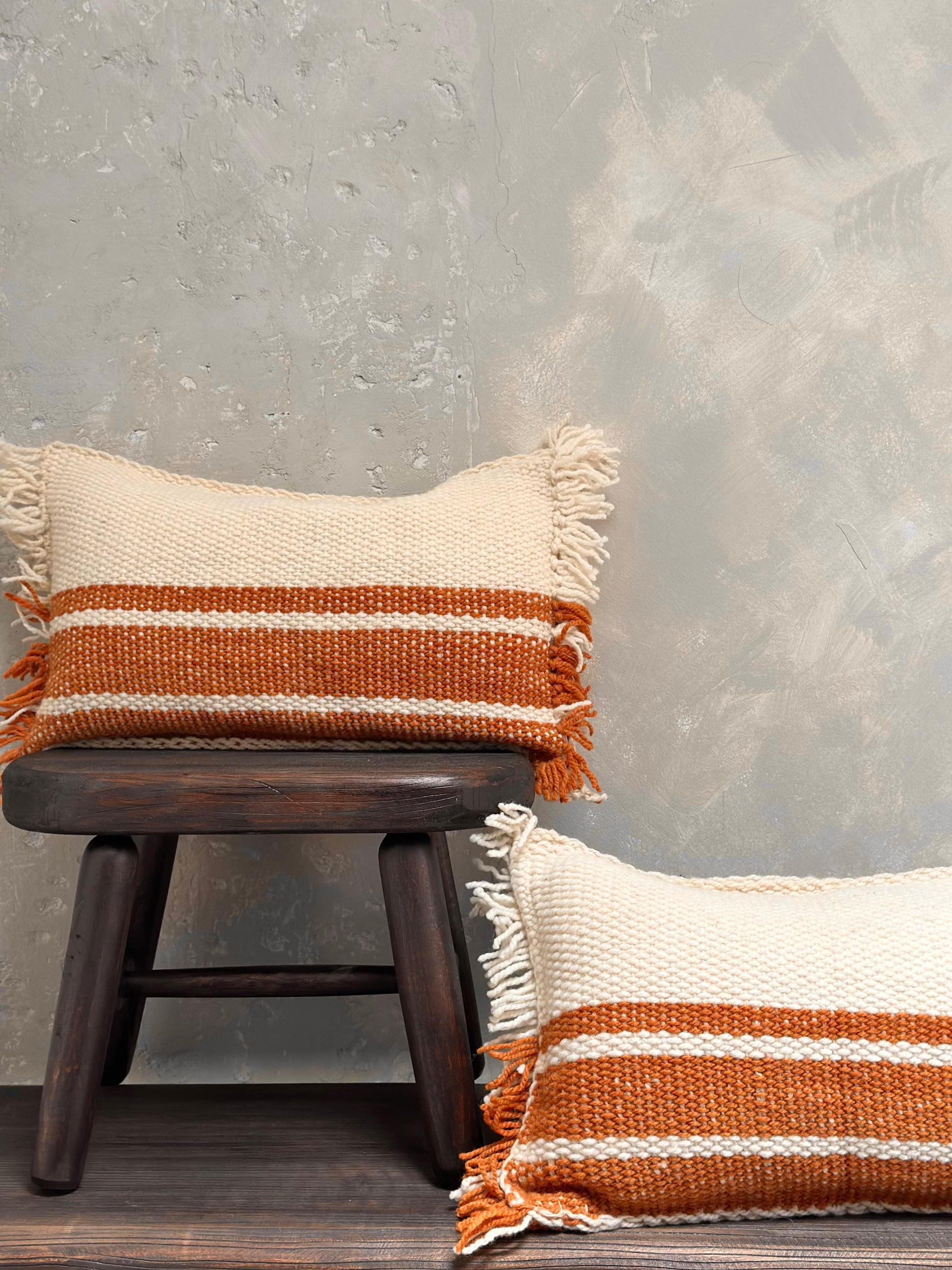 El Cojín Itahue, confeccionado en lana de oveja en tonos naranjo y crudo, aporta una sensación de calidez y elegancia a cualquier ambiente. Su textura natural y colores armoniosos enriquecen el espacio, creando un ambiente acogedor y sofisticado. Perfecto para quienes buscan combinar confort y estilo en su decoración. Todos nuestros cojines se pueden hacer en distintos tonos y dimensiones. Disponible en 3 semanas ya que se manda a fabricar.