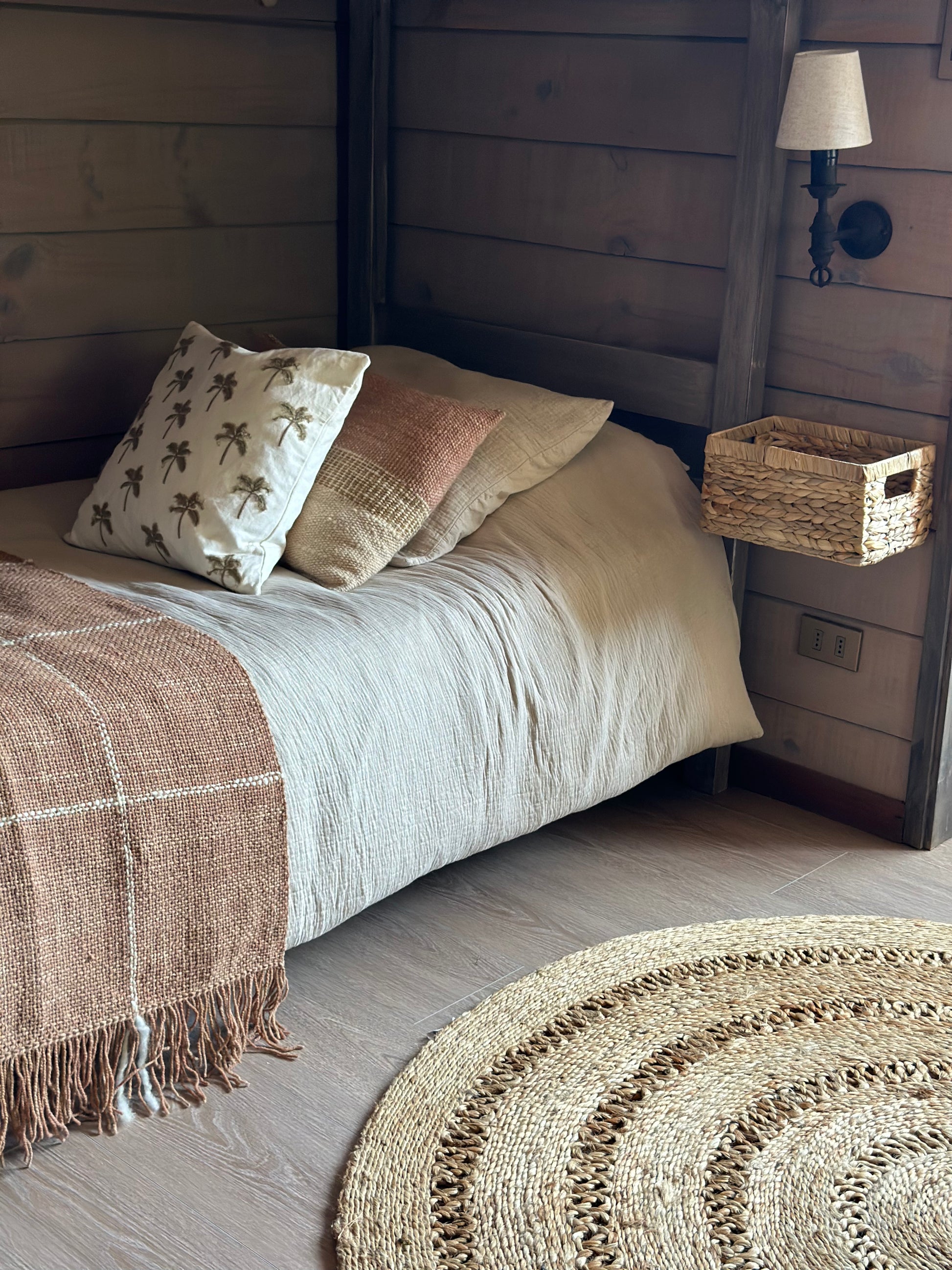 El Cojín Ñirre combina tonos crudos y terracota y rosado para aportar calidez y color a cualquier espacio. Elaborado por artesanas chilenas, utiliza la técnica tradicional del telar, destacando la riqueza cultural en cada detalle. Fabricado 100% en lana de oveja y teñido con tintes naturales, ofrece una textura suave y un acabado exclusivo, ideal para ambientes que buscan elegancia y autenticidad. Todos nuestros cojines se pueden hacer en distintos tonos y dimensiones. Disponible en 3 semanas ya que se manda a fabricar.
