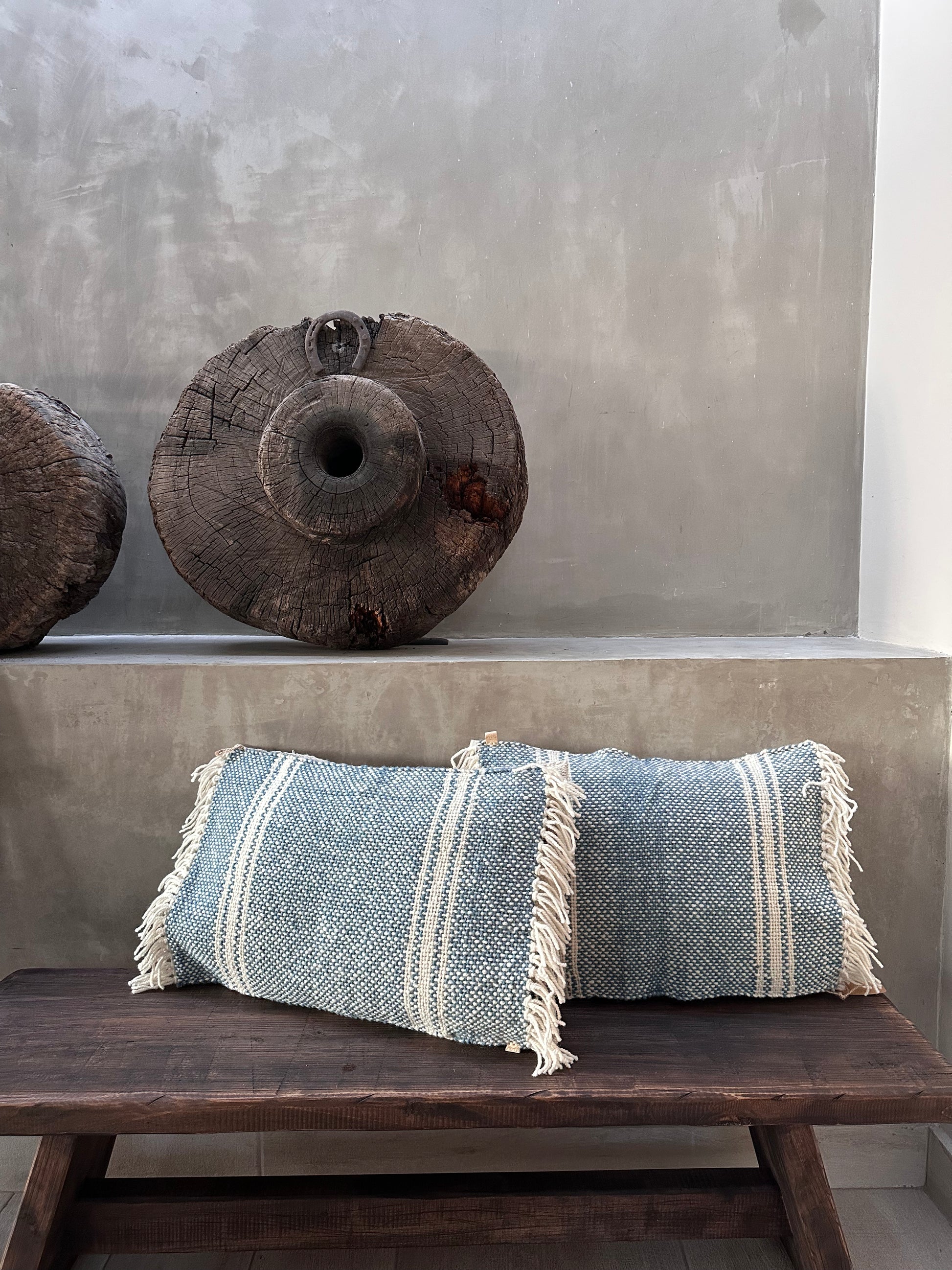 El cojín pangue, elaborado en un tono celeste y crudo, logra generar un ambiente pacífico y relajado con sus tonos tranquilos. Su diseño artesanal aporta un toque de confort y elegancia única, ideal para transformar tu espacio en un refugio acogedor y sofisticado. Todos nuestros cojines se pueden hacer en distintos tonos y dimensiones. Disponible en 3 semanas ya que se manda a fabricar.