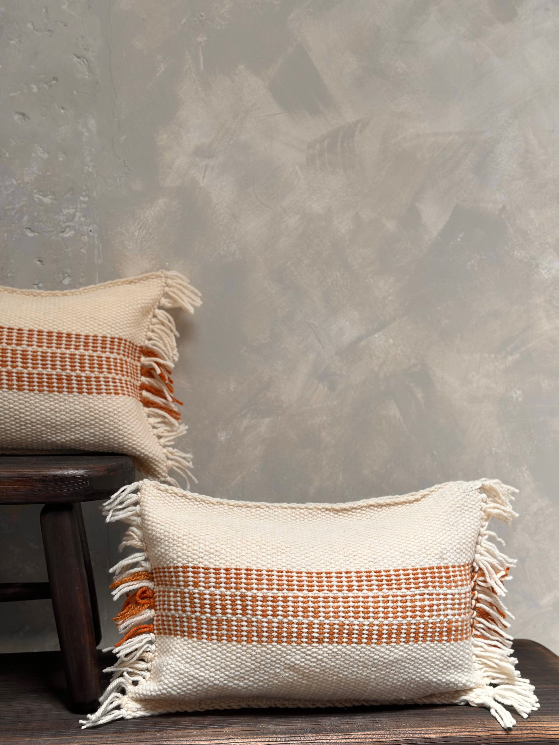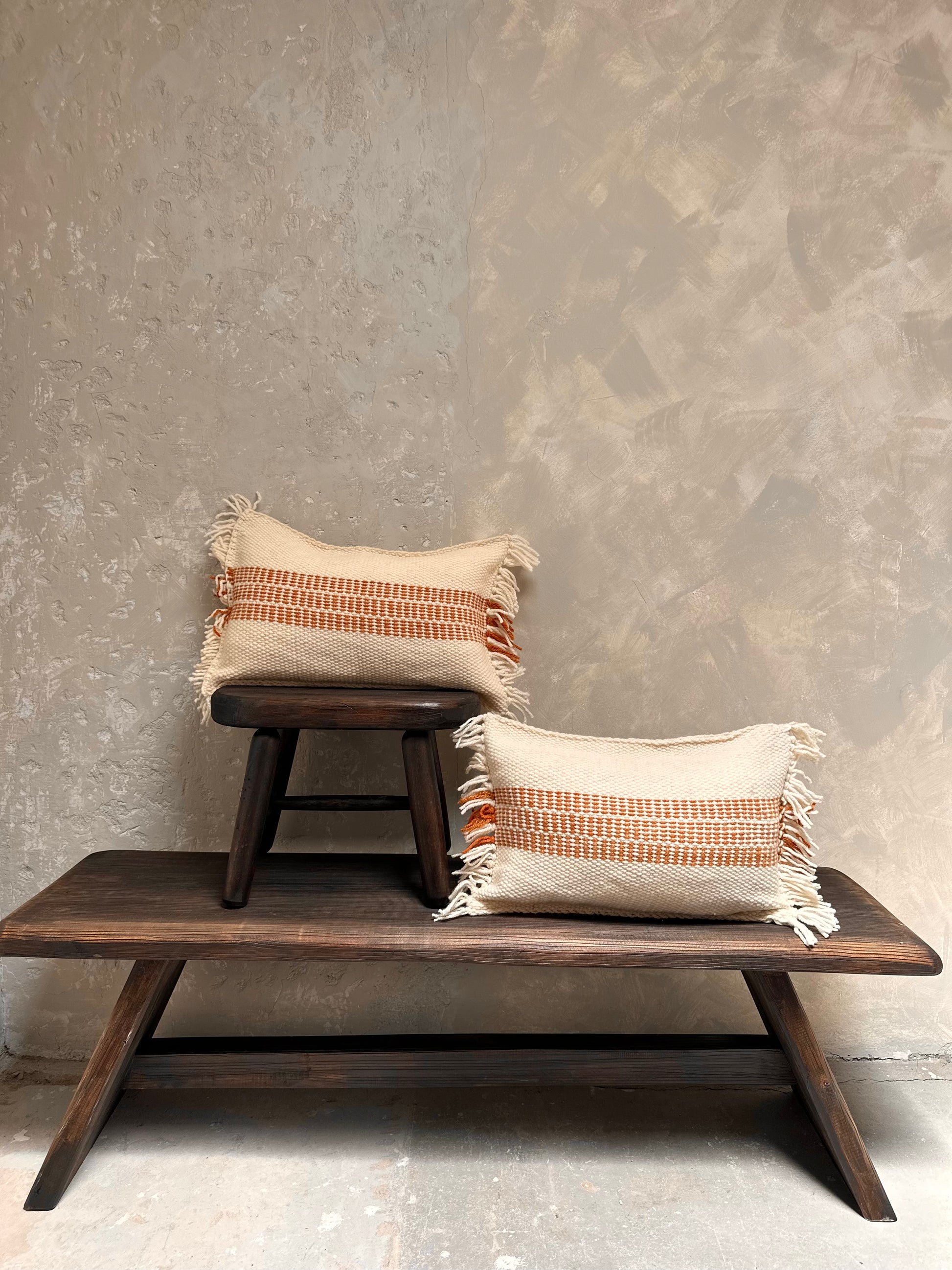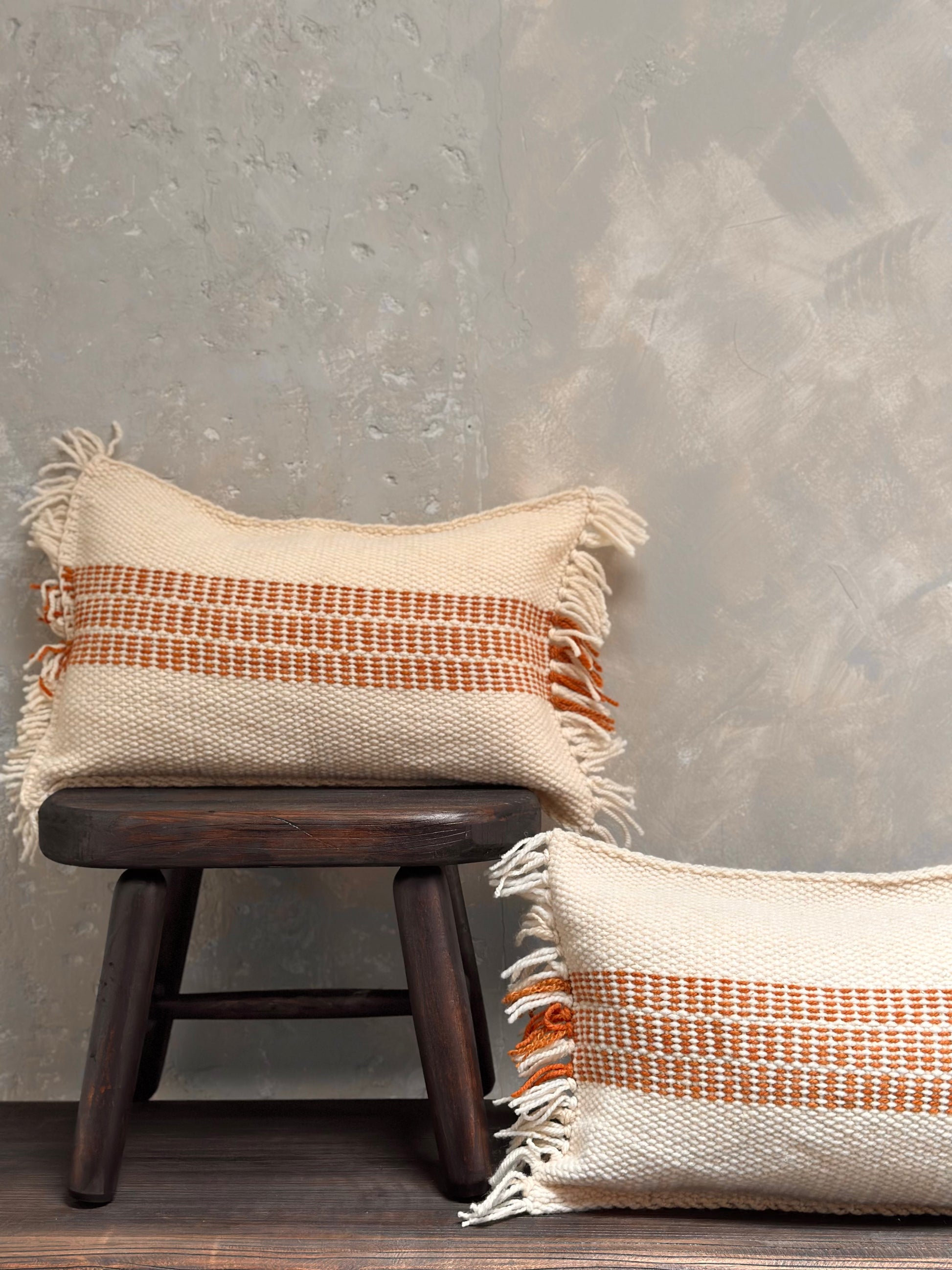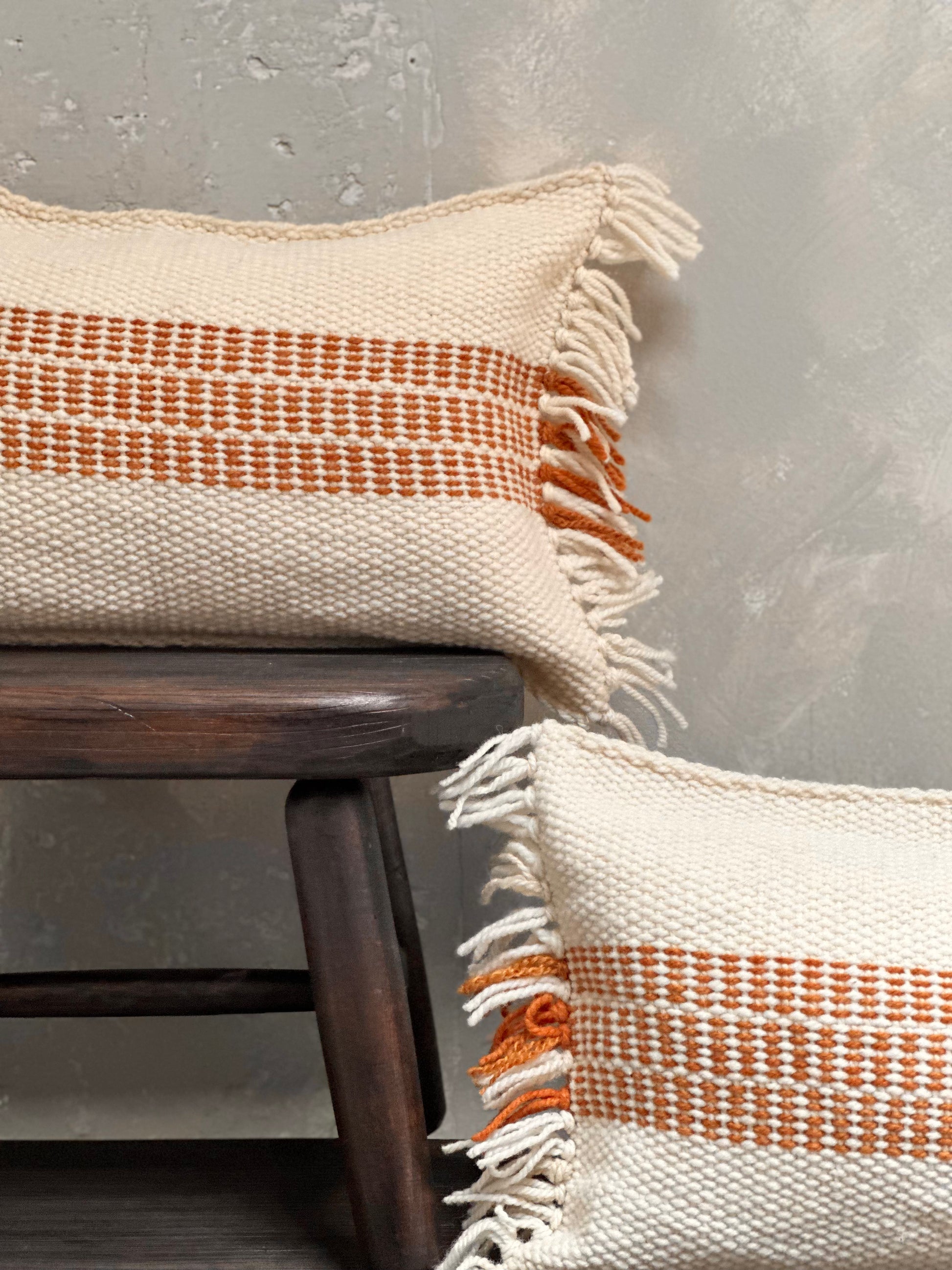 El Cojín Teno, confeccionado en lana de oveja en tonos naranjo y crudo, aporta una sensación de calidez y elegancia a cualquier ambiente. Su textura natural y colores armoniosos enriquecen el espacio, creando un ambiente acogedor y sofisticado. Perfecto para quienes buscan combinar confort y estilo en su decoración. Todos nuestros cojines se pueden hacer en distintos tonos y dimensiones. Disponible en 3 semanas ya que se manda a fabricar.