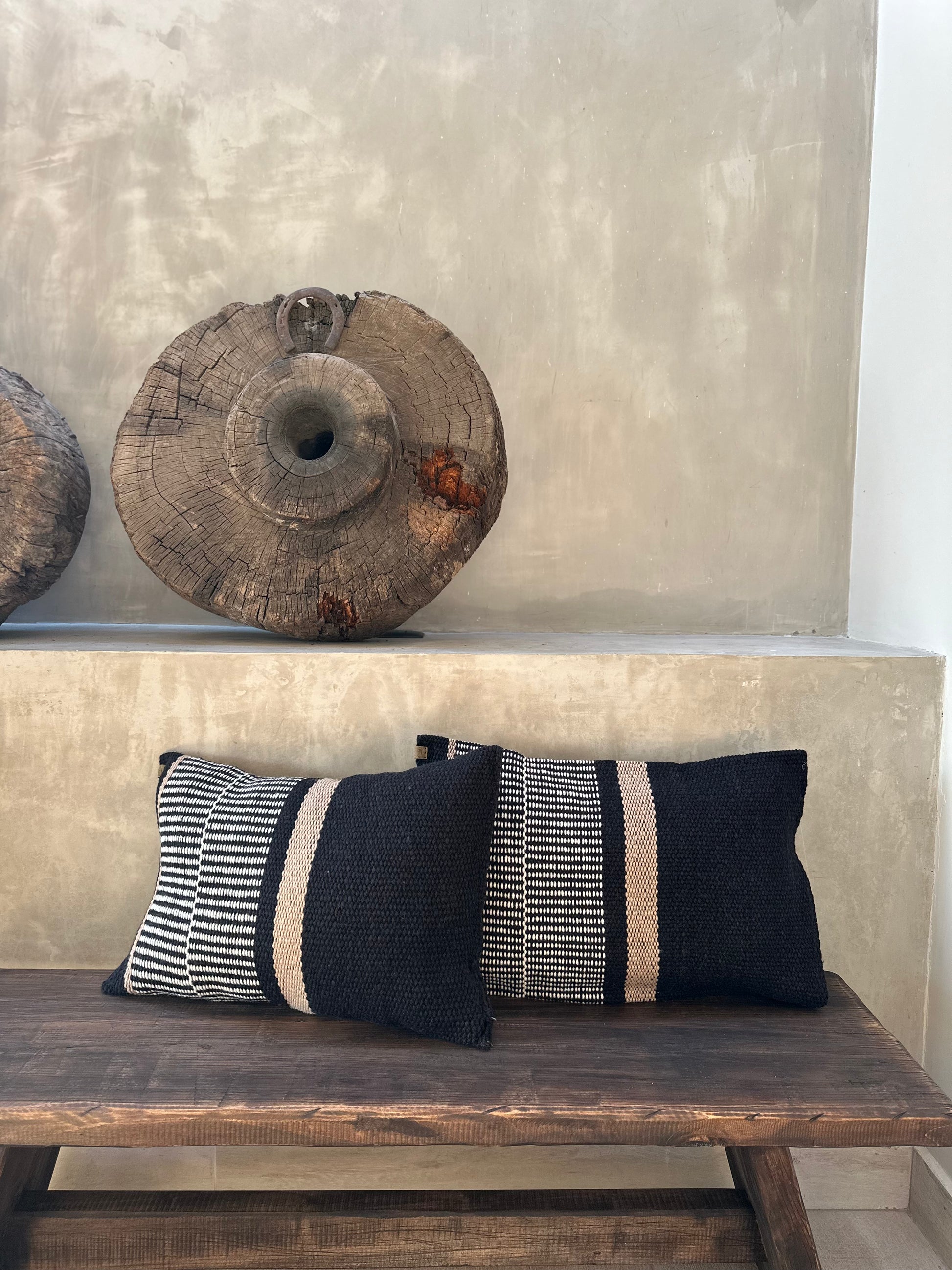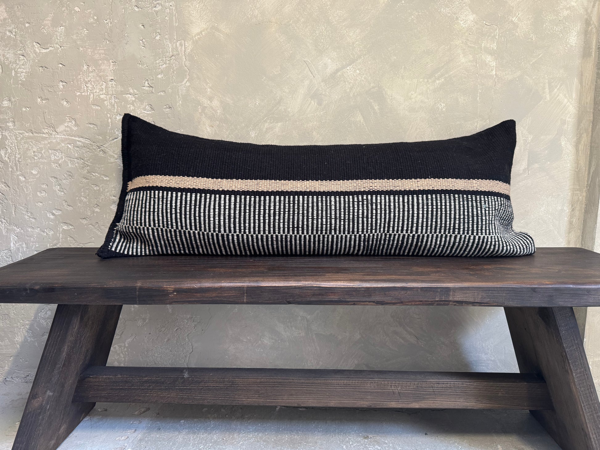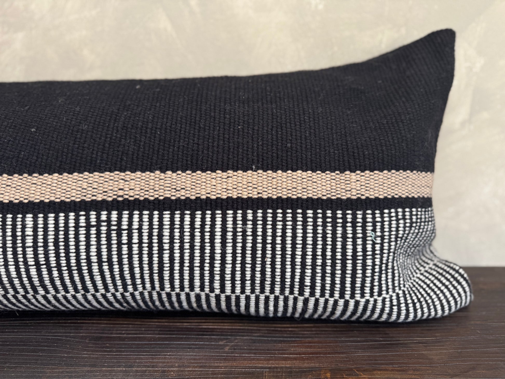 El Cojín Villarrica combina elegancia y tradición, teñido y tejido a mano por expertas artesanas con lana de oveja 100% natural. Su diseño en negro, crudo y beige aporta sofisticación a cualquier espacio, mientras que el cierre lateral facilita el lavado de la funda. Incluye relleno para mayor comodidad y durabilidad, resaltando la autenticidad y calidad artesanal en cada detalle. Entrega en 3 semanas ya que se manda a fabricar.