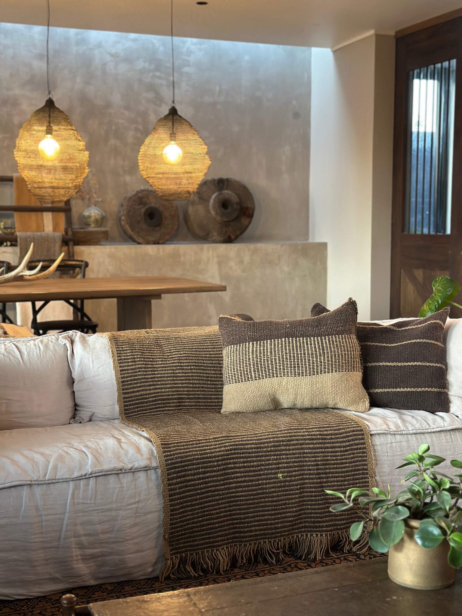 La Manta Curaco destaca por su paleta beige y café, que aporta calidez y una simpleza cromática a cualquier espacio. Elaborada en lana de oveja por artesanas del sur de Chile, esta pieza honra la técnica ancestral del telar, combinando tradición y elegancia para enriquecer ambientes con un carácter auténtico. Todas nuestras mantas se pueden hacer en distintos tonos y dimensiones. Disponible en 3 semanas ya que se manda a fabricar.
